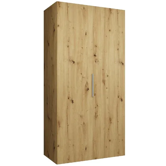 Szafa Marbella I 100 w wersji artisan z elementami w kolorze srebrnym to propozycja łącząca naturalny wygląd drewna z nowoczesną estetyką. Jasne, drewnopodobne wybarwienie dąb artisan wprowadza ciepło i harmonię, natomiast srebrne akcenty nadają całości subtelnej elegancji oraz współczesnego charakteru.