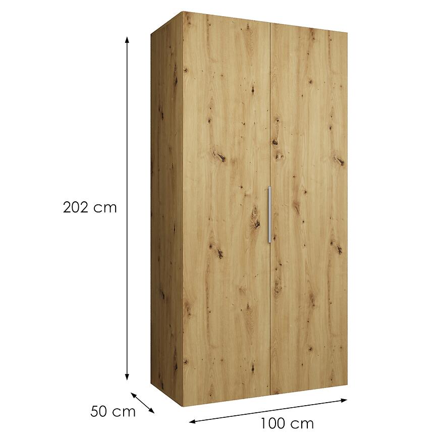 Szafa ma 100 cm szerokości, 202 cm wysokości oraz 50 cm głębokości, co pozwala na wygodne przechowywanie przy zachowaniu proporcjonalnej, prostej bryły. Klasyczny kształt sprawia, że mebel prezentuje się lekko i estetycznie, a jednocześnie oferuje dużą funkcjonalność.