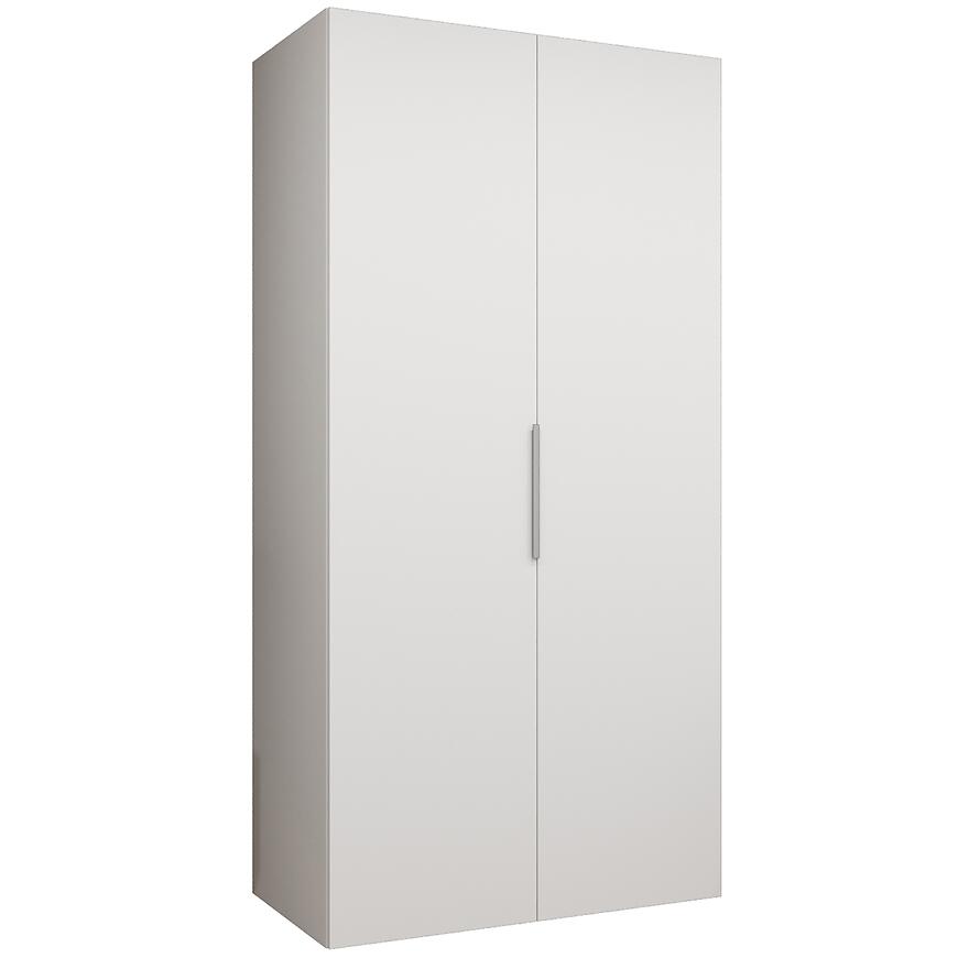 Dzięki wymiarom 100 cm szerokości, 202 cm wysokości i 50 cm głębokości, szafa oferuje przestrzeń do przechowywania przy zachowaniu kompaktowej formy. Model należy do kategorii szaf dwudrzwiowych bez lustra, co sprawia, że jego minimalistyczna forma nie przytłacza przestrzeni, a jednocześnie pozostaje funkcjonalna.