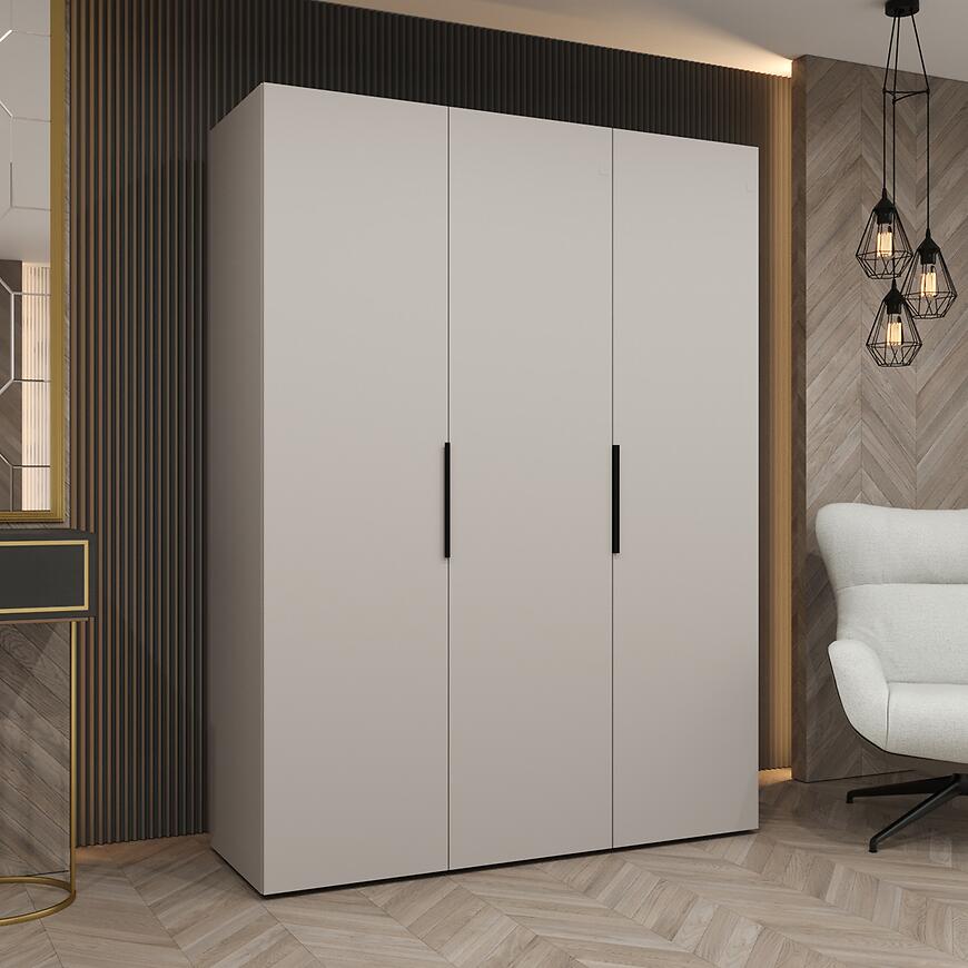 Szafa Marbella I 150 kaszmir/czarny to propozycja dla osób poszukujących trzydrzwiowej szafy 150 cm w nowoczesnym stylu, z matowym wykończeniem i eleganckim kolorem kaszmir.
