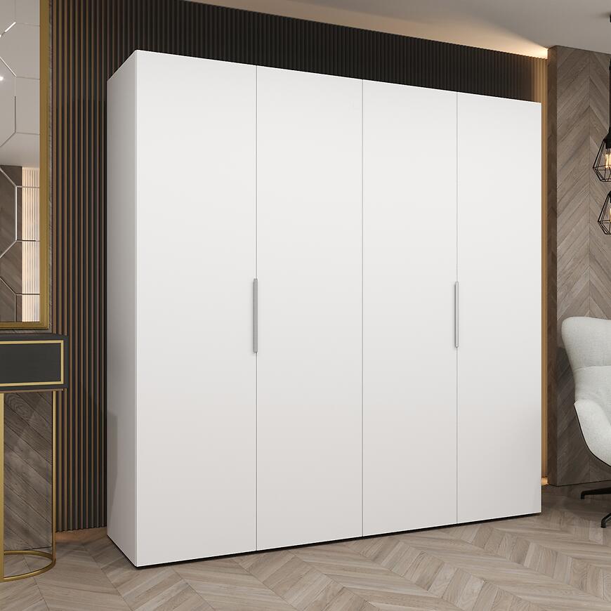 Szafa Marbella I 200 biały/srebrny to propozycja dla osób poszukujących kilkudrzwiowej szafy 200 cm w nowoczesnym stylu, z matowym wykończeniem i subtelnymi srebrnymi detalami.