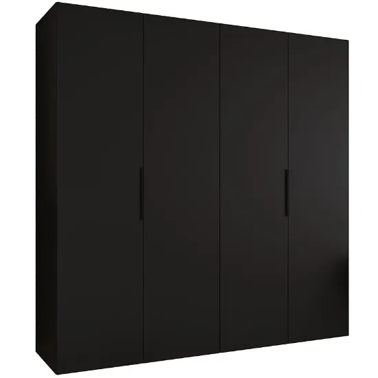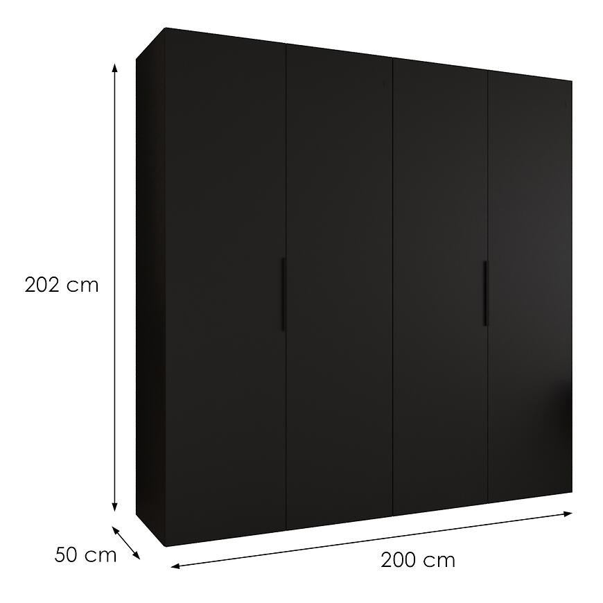 Szafa Marbella I 200 czarny to propozycja dla osób poszukujących kilkudrzwiowej szafy 200 cm w nowoczesnym stylu, z matowym wykończeniem i wyrazistym czarnym kolorem.