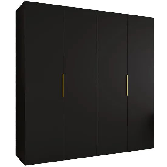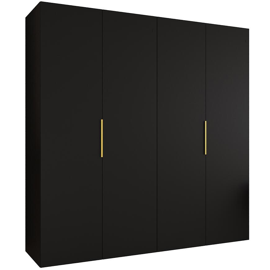 Szafa Marbella I 200 czarny/złoty to propozycja dla osób poszukujących kilkudrzwiowej szafy 200 cm w nowoczesnym stylu, z matowym wykończeniem i subtelnymi złotymi detalami.