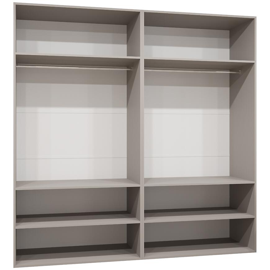 Kilkudrzwiowa konstrukcja umożliwia wygodny dostęp do wnętrza, a stabilna konstrukcja o wadze 134,3 kg gwarantuje trwałość i solidność szafy. Brak lustra pozwala zachować jednolity design bryły, a prostota i elegancja pozostają dominującymi elementami.