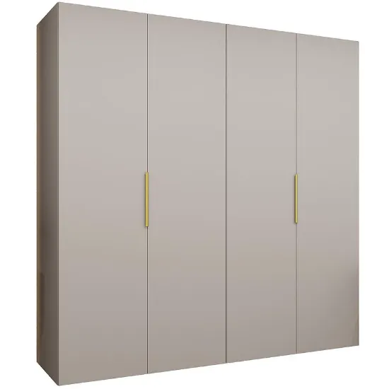 Szafa Marbella I 200 kaszmir/złoty to propozycja dla osób poszukujących kilkudrzwiowej szafy 200 cm w nowoczesnym stylu, z matowym wykończeniem i subtelnymi złotymi akcentami.