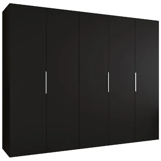 Szafa Marbella I 250 czarny/srebrny to idealna propozycja dla osób poszukujących kilkudrzwiowej szafy 250 cm w nowoczesnym stylu, z matowym wykończeniem i subtelnymi srebrnymi detalami.