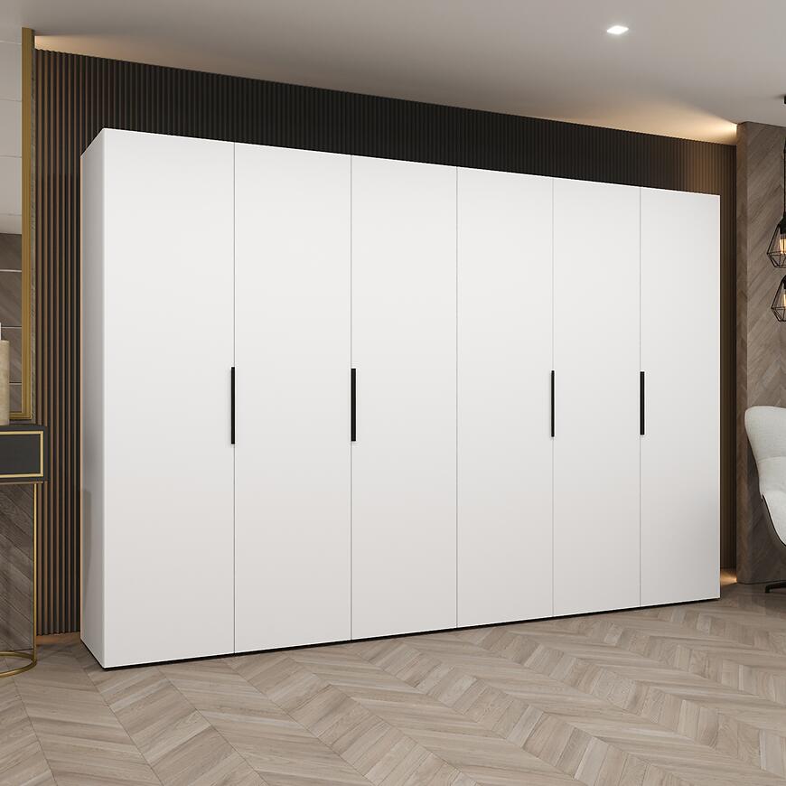 Szafa Marbella I 300 biały/czarny to doskonały wybór dla osób poszukujących nowoczesnej, pojemnej i eleganckiej szafy, która łączy funkcjonalność z minimalistycznym designem.
