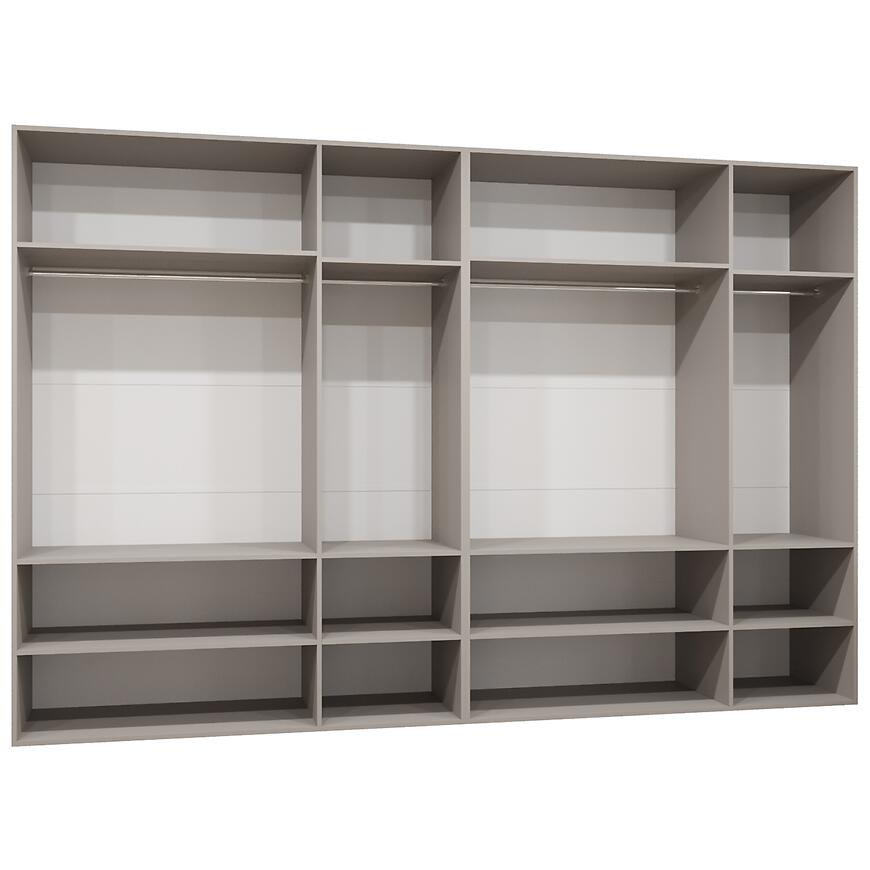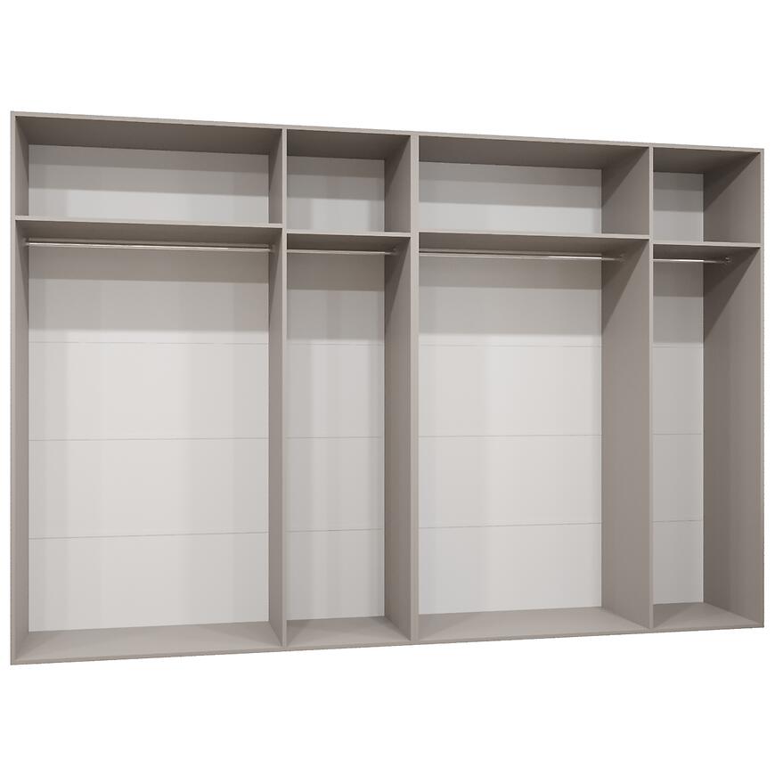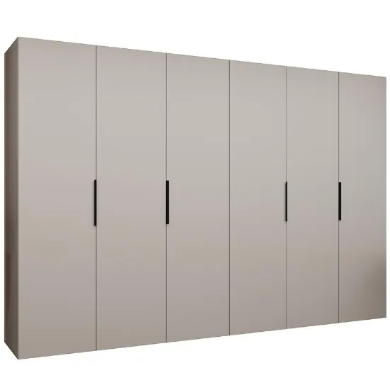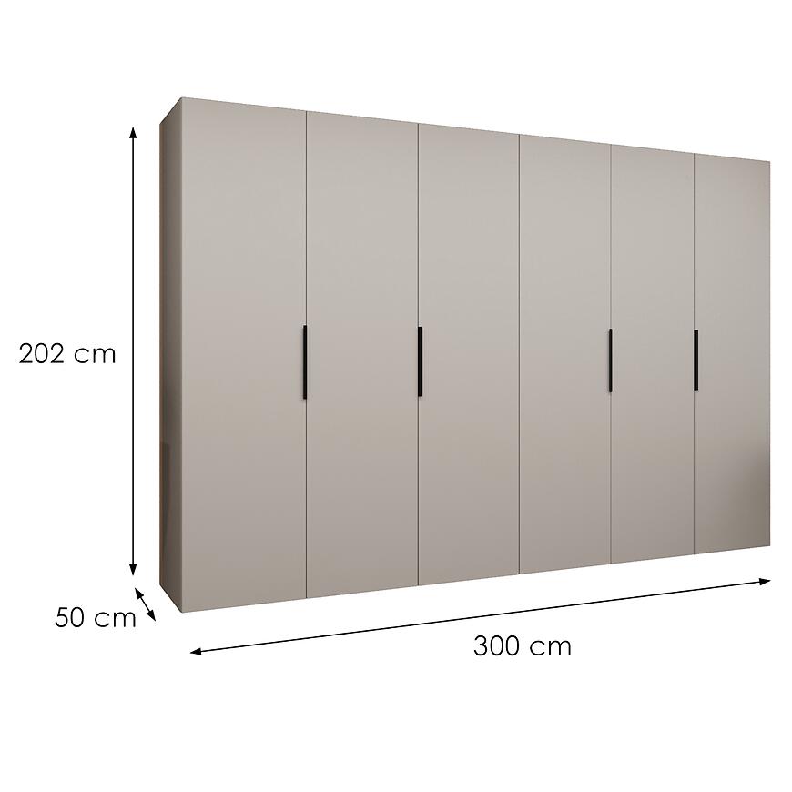 Szafa Marbella I 300 kaszmir/czarny łączy dużą pojemność z eleganckim wyglądem. Wymiary 300 cm szerokości, 202 cm wysokości i 50 cm głębokości gwarantują komfortowe przechowywanie odzieży i akcesoriów. Kilka drzwi klasycznych zapewnia łatwy dostęp do zawartości, a stonowana kolorystyka kaszmir dodaje meblowi subtelnej elegancji.
