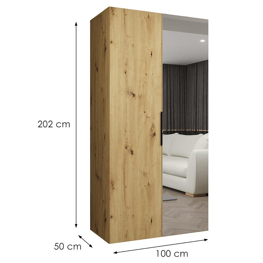 Dzięki połączeniu nowoczesnego designu, solidnej konstrukcji i modnego wybarwienia dąb artisan, szafa Marbella II 100 z lustrem stanowi atrakcyjny wybór dla osób poszukujących estetycznego i pojemnego rozwiązania do przechowywania.