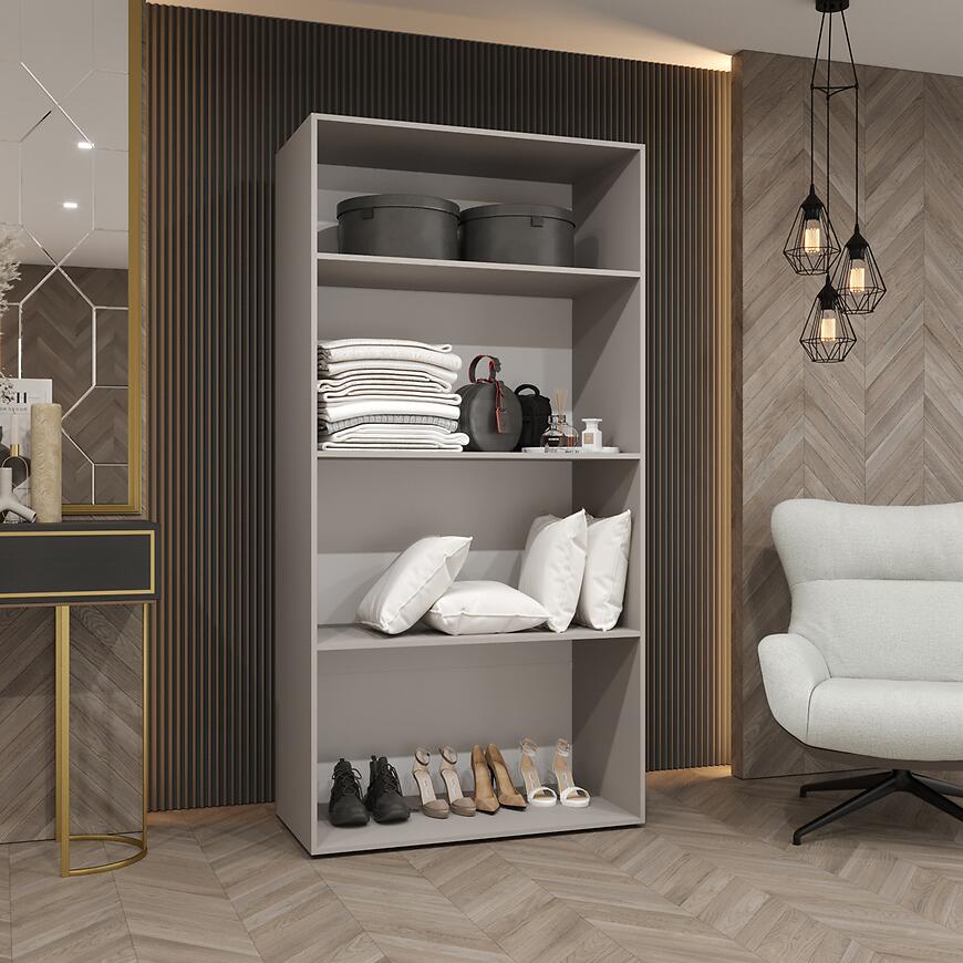 Szafa Marbella II 100 została wykonana z laminowanej płyty wiórowej, która cechuje się trwałością, odpornością na codzienne użytkowanie i łatwością utrzymania w czystości. Matowe wykończenie ogranicza widoczność zabrudzeń i odcisków palców, co jest istotne przy jasnym wybarwieniu kaszmir.