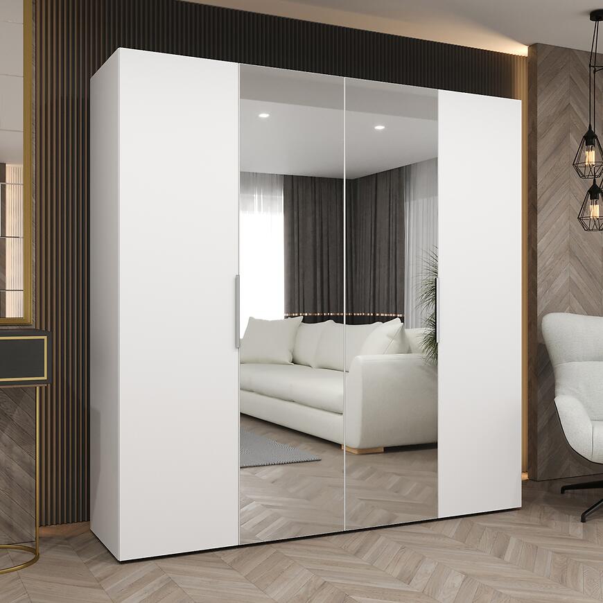 Szafa Marbella II 200 biały/srebrny dostarczana jest w elementach do samodzielnego montażu. Matowe wykończenie, przestronne wnętrze i lustro sprawiają, że jest elegancka, funkcjonalna i idealna dla osób ceniących nowoczesny design oraz praktyczne rozwiązania do przechowywania.