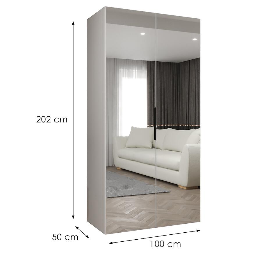 Szafa Marbella III 100 w kolorze biało-czarnym to połączenie nowoczesnego wzornictwa, praktyczności i trwałej konstrukcji. Dwudrzwiowa szafa wyposażona w wbudowane lustro nie tylko ułatwia codzienne korzystanie, ale również optycznie powiększa przestrzeń w pomieszczeniu, nadając wnętrzu lekkości i stylowego charakteru.