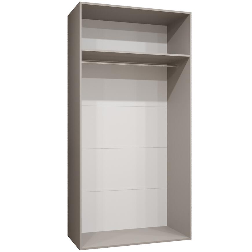 Fronty i korpus szafy wykonane są w kolorze kaszmir, wprowadzającym spójność i subtelność wizualną. Matowe wykończenie nadaje powierzchniom elegancki, nowoczesny wygląd, a złoty detal stanowi atrakcyjny kontrapunkt, dodający charakteru i prestiżu.