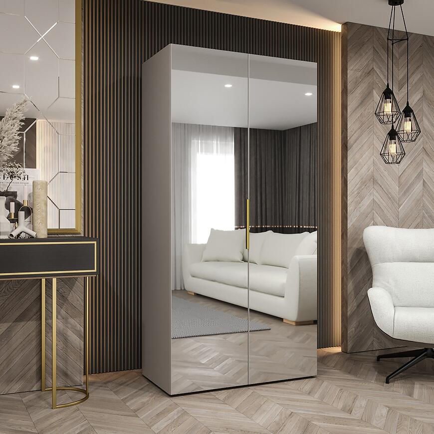 Szafa kaszmirowa z lustrem i złotym akcentem – styl i funkcjonalność
