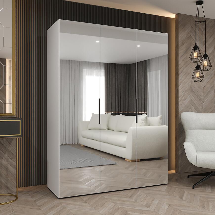 Szafa Marbella III 150 biały/czarny to przestronny i elegancki mebel łączący nowoczesny design z klasycznym kontrastem bieli i czerni. Trzydrzwiowa konstrukcja z dużym lustrem zapewnia wygodną przestrzeń do przechowywania, a jednocześnie dodaje wnętrzu lekkości i elegancji. Matowe wykończenie frontów i korpusu nadaje szafie uporządkowany i nowoczesny wygląd.