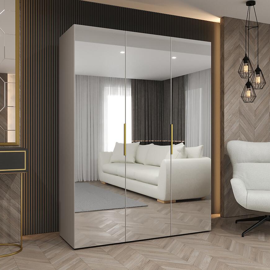 Szafa kaszmirowa z lustrem i złotym akcentem – styl i funkcjonalność