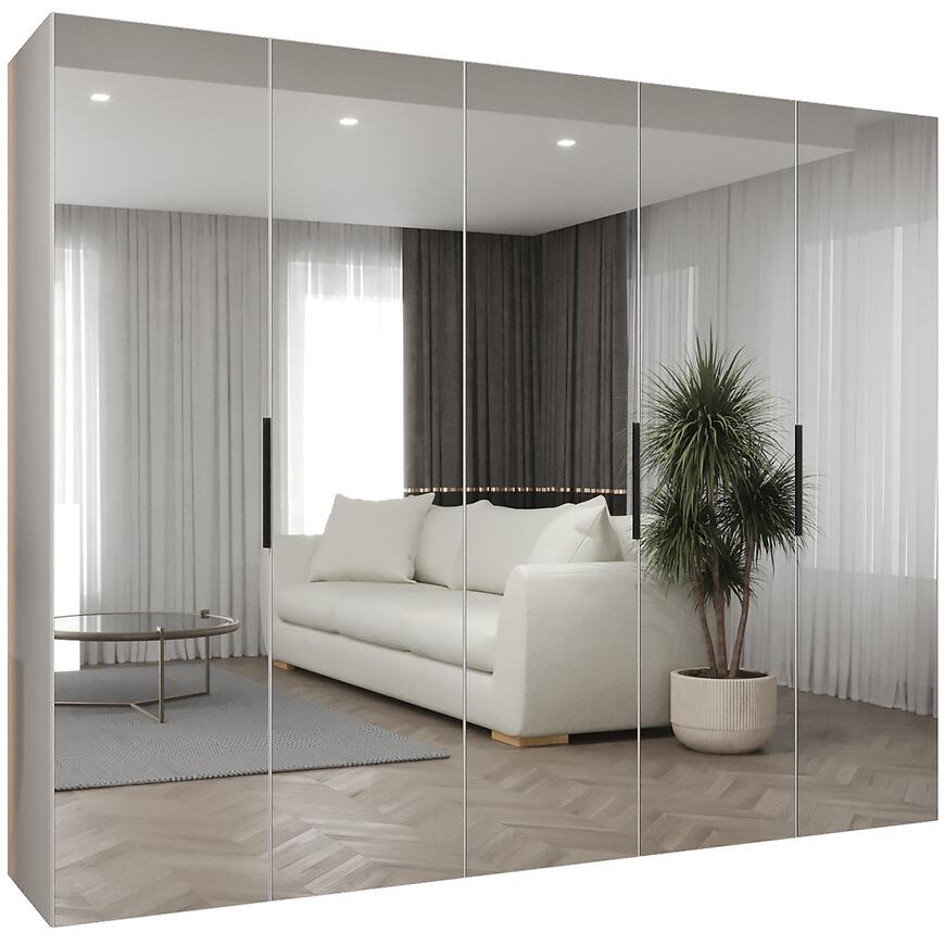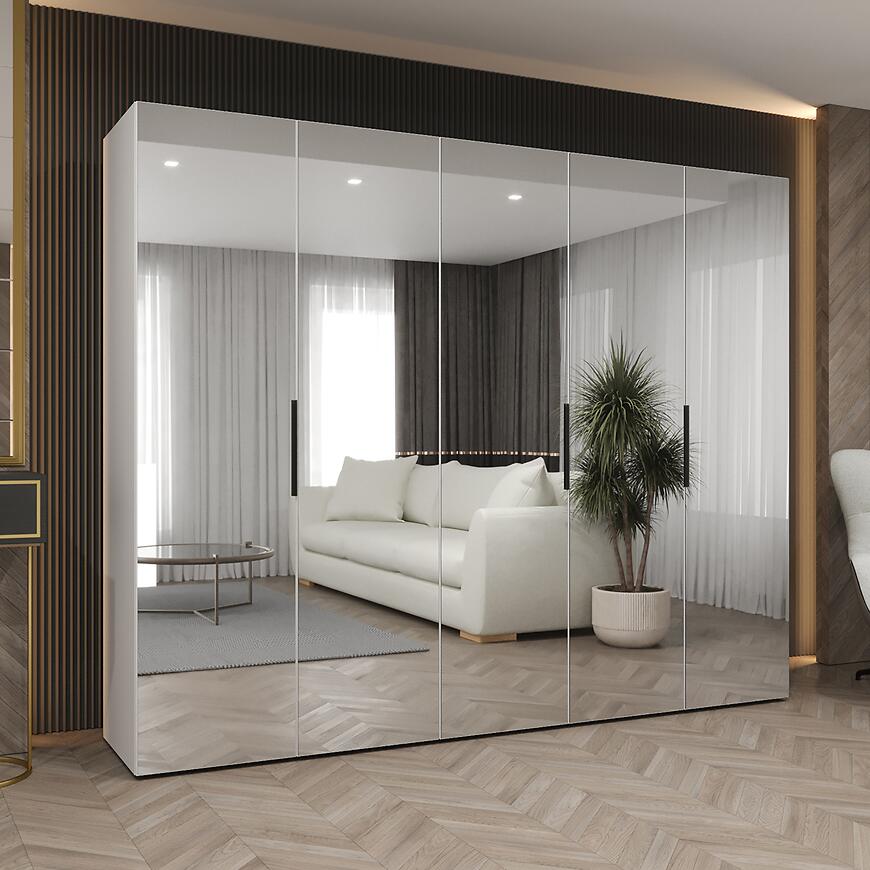 Szafa Marbella III 250 biały/czarny to przestronny mebel o nowoczesnym designie, łączący elegancję białych frontów z kontrastującym czarnym detalem. Kilkudrzwiowa konstrukcja z dużym lustrem zapewnia funkcjonalną przestrzeń do przechowywania, a matowe wykończenie frontów i korpusu nadaje bryle minimalistyczny i stylowy charakter.
