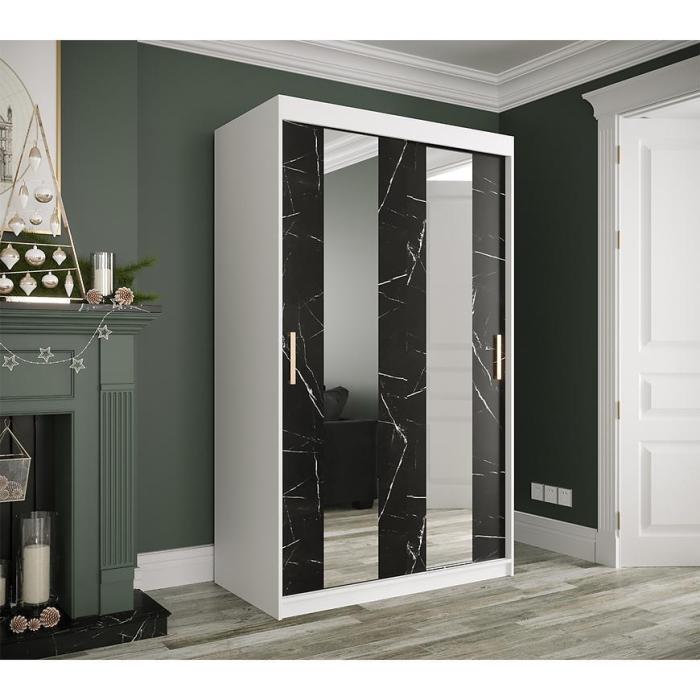 Szafa przesuwna Marmur z lustrem to praktyczny mebel do pokoju dziennego, salonu lub sypialni. Sprawdzi się również jako szafa do przedpokoju. Kolor mebla wpasuje się w wiele aranżacji. Będzie pasowała do wnętrz klasycznych jak również do wnętrz nowoczesnych. To szafa dwudrzwiowa, która posiada półki oraz drążek do wieszania ubrań. Pojemna szafa to dobre rozwiązanie, żeby schować to czego potrzebujesz. Szafa z pewnością sprawdzi się w danym pomieszczeniu. Możliwość dokupienia kompletu szuflad (2szt.) – 3355575.