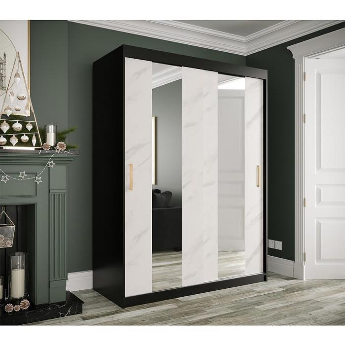 Szafa przesuwna Marmur z lustrem to praktyczny mebel do sypialni lub przedpokoju. Sprawdzi się również jako szafa garderoba. Kolor mebla wpasuje się w wiele aranżacji. Będzie pasowała do wnętrz klasycznych jak również do wnętrz nowoczesnych. To szafa dwudrzwiowa, która posiada półki oraz drążek do wieszania ubrań. Pojemna szafa to dobre rozwiązanie, żeby schować to czego potrzebujesz. Szafa sprawdzi się z pewnością w danym pomieszczeniu. Możliwość dokupienia kompletu szuflad (2SZT) – 3355578.