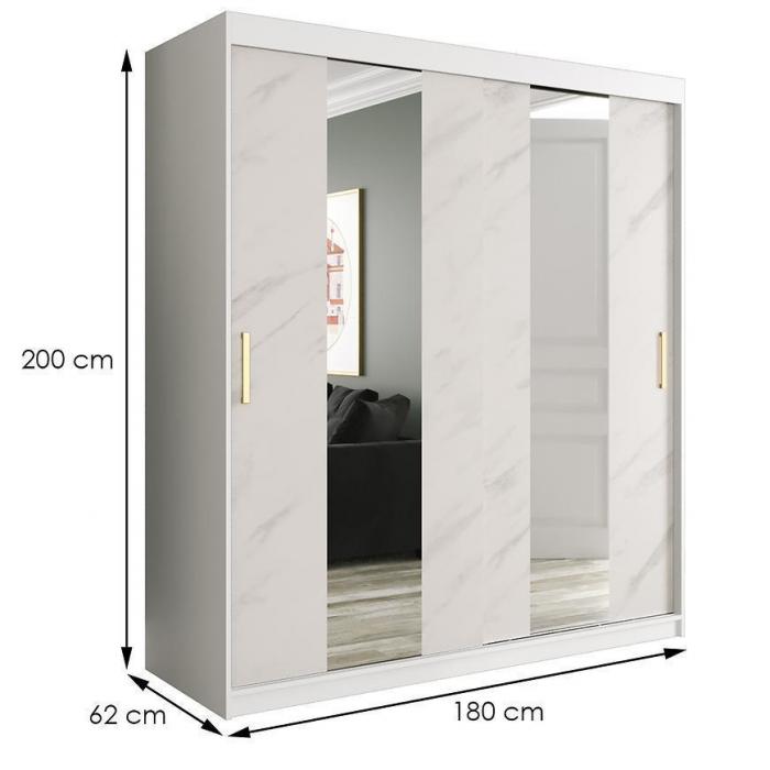 Szafa przesuwna Marmur z lustrem to praktyczny mebel do sypialni lub przedpokoju. Sprawdzi się również jako szafa garderoba. Kolor mebla wpasuje się w wiele aranżacji. Będzie pasowała do wnętrz klasycznych jak również do wnętrz nowoczesnych. To szafa dwudrzwiowa, która posiada półki oraz drążek do wieszania ubrań. Pojemna szafa to dobre rozwiązanie, żeby schować to czego potrzebujesz. Szafa sprawdzi się z pewnością w danym pomieszczeniu. Możliwość dokupienia kompletu szuflad (2SZT) – 3355575.