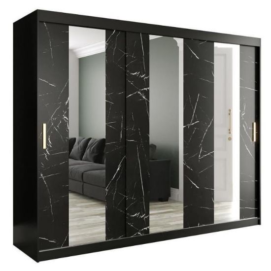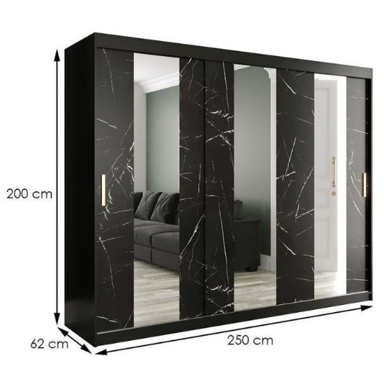 Szafa przesuwna Marmur z lustrem to praktyczny mebel do sypialni lub przedpokoju. Sprawdzi się również jako szafa garderoba. Kolor mebla wpasuje się w wiele aranżacji. Będzie pasowała do wnętrz klasycznych jak również do wnętrz nowoczesnych. To szafa, która posiada półki oraz drążek do wieszania ubrań. Pojemna szafa to dobre rozwiązanie, żeby schować to czego potrzebujesz. Szafa sprawdzi się z pewnością w danym pomieszczeniu. Możliwość dokupienia kompletu szuflad (2SZT) – 3355579.