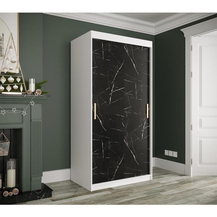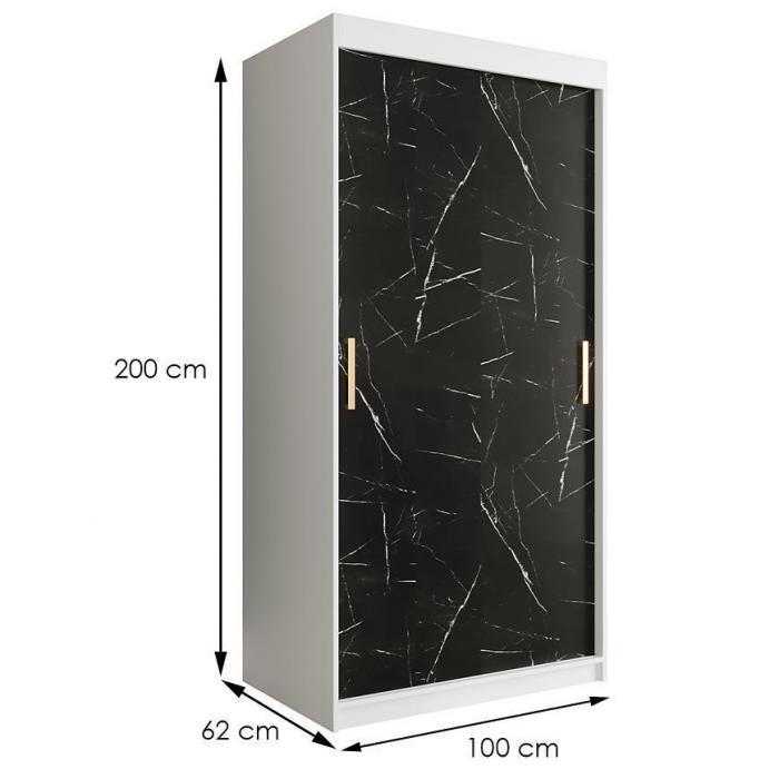 Szafa przesuwna Marmur to praktyczny mebel do sypialni. Szafa sprawdzi się również jako szafa do przedpokoju czy jako garderoba. Kolor mebla wpasuje się w wiele aranżacji. Będzie pasowała do wnętrz klasycznych jak również do wnętrz nowoczesnych. To szafa dwudrzwiowa, która posiada półki oraz drążek do wieszania ubrań. Pojemna szafa to dobre rozwiązanie, żeby schować to czego potrzebujesz, pomieścisz swoje ubrania oraz inne przedmioty. Płyta laminowana to płyta, z której została wykonana szafa. Możliwość dokupienia kompletu szuflad (2SZT) – 3355574.