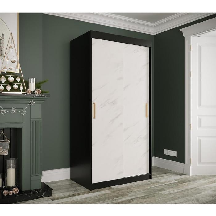 Szafa przesuwna Marmur to praktyczny mebel do sypialni. Szafa sprawdzi się również jako szafa do przedpokoju czy jako garderoba. Kolor mebla wpasuje się w wiele aranżacji. Będzie pasowała do wnętrz klasycznych jak również do wnętrz nowoczesnych. To szafa dwudrzwiowa, która posiada półki oraz drążek do wieszania ubrań. Pojemna szafa to dobre rozwiązanie, żeby schować to czego potrzebujesz, pomieścisz swoje ubrania oraz inne przedmioty. Płyta laminowana to płyta, z której została wykonana szafa. Możliwość dokupienia kompletu szuflad (2SZT) – 3355577.