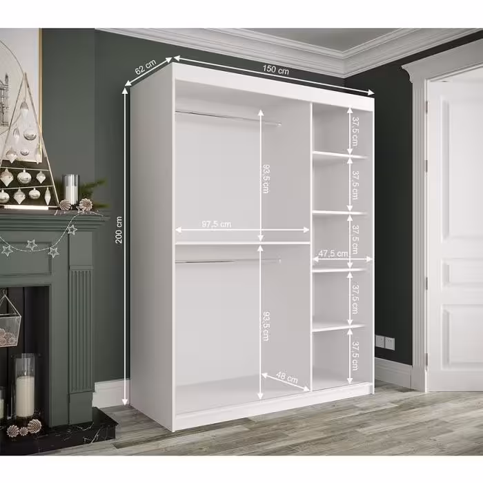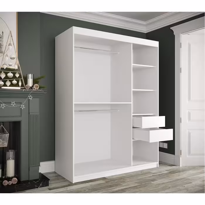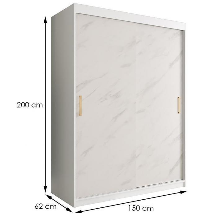 Szafa przesuwna Marmur to praktyczny mebel do sypialni. Szafa sprawdzi się również jako szafa do przedpokoju czy jako garderoba. Kolor mebla wpasuje się w wiele aranżacji. Będzie pasowała do wnętrz klasycznych jak również do wnętrz nowoczesnych. To szafa dwudrzwiowa, która posiada półki oraz drążek do wieszania ubrań. Pojemna szafa to dobre rozwiązanie, żeby schować to czego potrzebujesz, pomieścisz swoje ubrania oraz inne przedmioty. Płyta laminowana to płyta, z której została wykonana szafa. Możliwość dokupienia kompletu szuflad (2SZT) – 3355575.