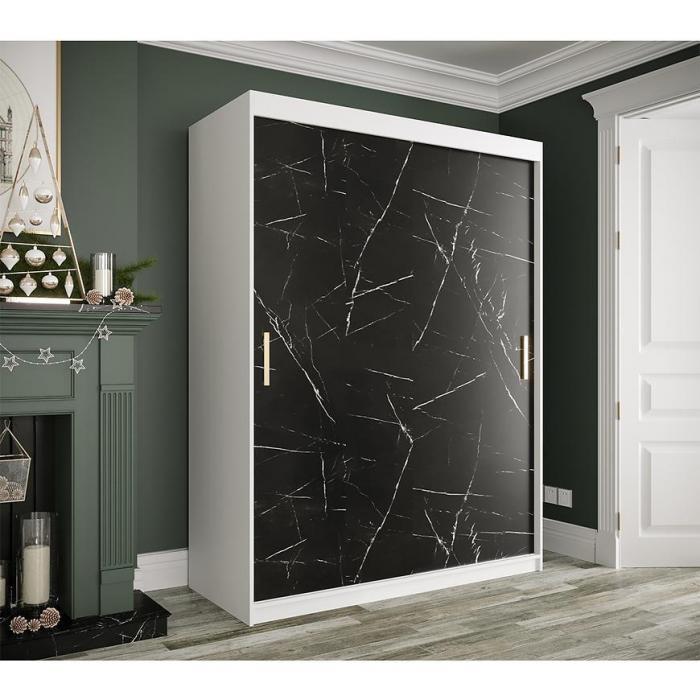 Szafa przesuwna Marmur to praktyczny mebel do sypialni. Szafa sprawdzi się również jako szafa do przedpokoju czy jako garderoba. Kolor mebla wpasuje się w wiele aranżacji. Będzie pasowała do wnętrz klasycznych jak również do wnętrz nowoczesnych. To szafa dwudrzwiowa, która posiada półki oraz drążek do wieszania ubrań. Pojemna szafa to dobre rozwiązanie, żeby schować to czego potrzebujesz, pomieścisz swoje ubrania oraz inne przedmioty. Płyta laminowana to płyta, z której została wykonana szafa. Możliwość dokupienia kompletu szuflad (2SZT) – 3355575.