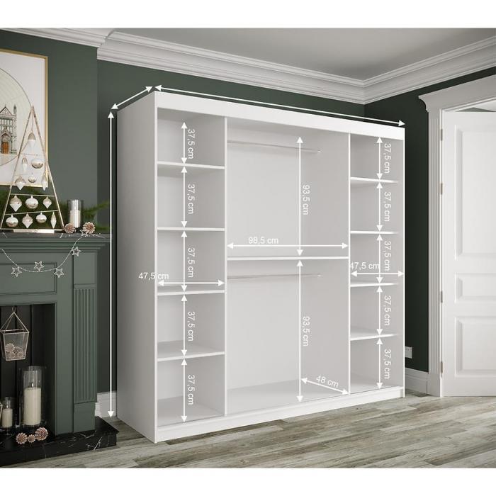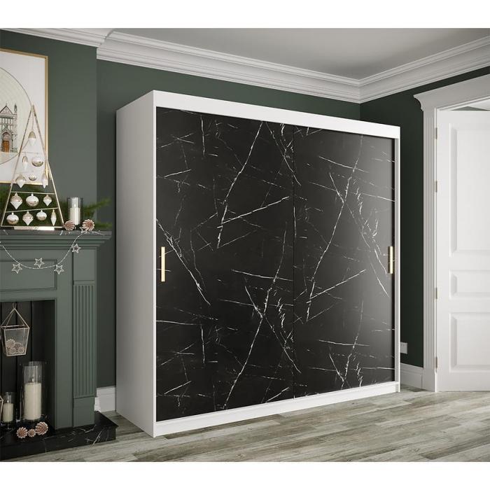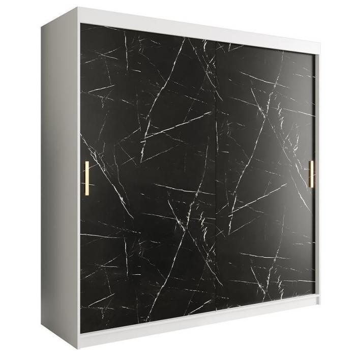Szafa przesuwna Marmur to praktyczny mebel do sypialni. Szafa sprawdzi się również jako szafa do przedpokoju czy jako garderoba. Kolor mebla wpasuje się w wiele aranżacji. Będzie pasowała do wnętrz klasycznych jak również do wnętrz nowoczesnych. To szafa dwudrzwiowa, która posiada półki oraz drążek do wieszania ubrań. Pojemna szafa to dobre rozwiązanie, żeby schować to czego potrzebujesz, pomieścisz swoje ubrania oraz inne przedmioty. Płyta laminowana to płyta, z której została wykonana szafa. Możliwość dokupienia kompletu szuflad (2SZT) – 3355575.