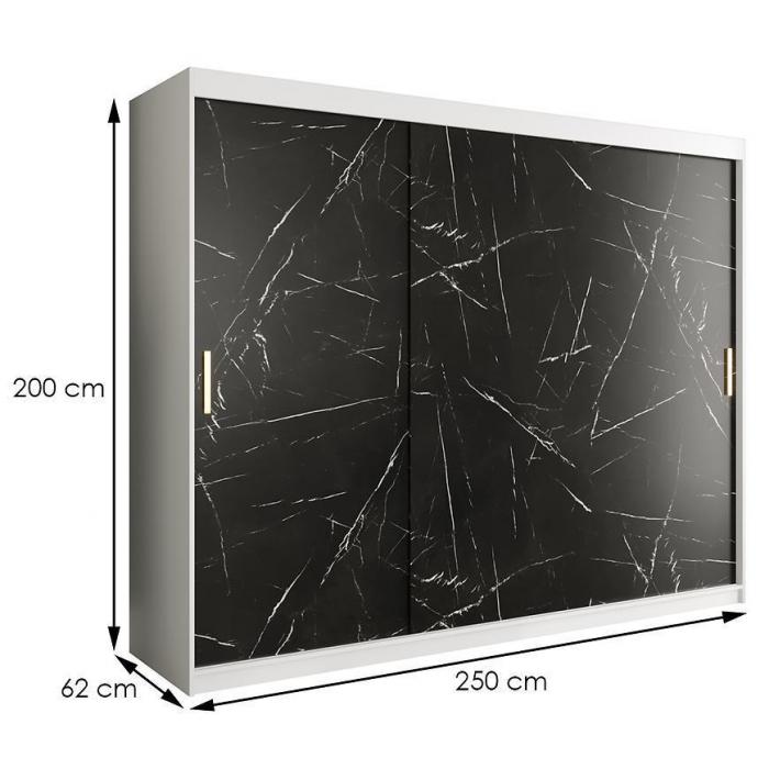 Szafa przesuwna Marmur to praktyczny mebel do sypialni. Szafa sprawdzi się również jako szafa do przedpokoju czy jako garderoba. Kolor mebla wpasuje się w wiele aranżacji. Będzie pasowała do wnętrz klasycznych jak również do wnętrz nowoczesnych. To szafa, która posiada półki oraz drążek do wieszania ubrań. Pojemna szafa to dobre rozwiązanie, żeby schować to czego potrzebujesz, pomieścisz swoje ubrania oraz inne przedmioty. Płyta laminowana to płyta, z której została wykonana szafa. Możliwość dokupienia kompletu szuflad (2SZT) – 3355576.