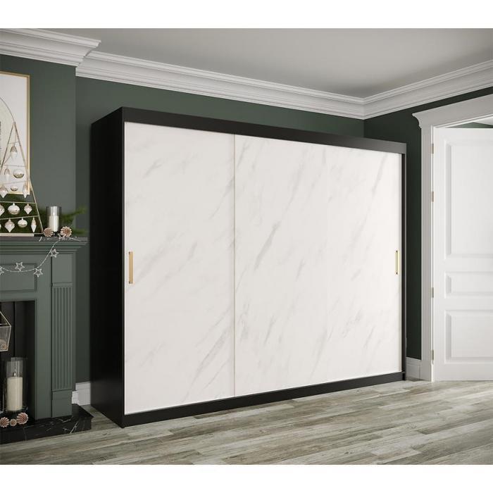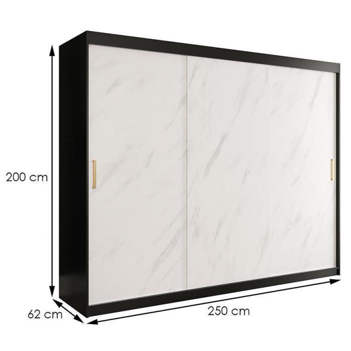 Szafa przesuwna Marmur to praktyczny mebel do sypialni. Szafa sprawdzi się również jako szafa do przedpokoju czy jako garderoba. Kolor mebla wpasuje się w wiele aranżacji. Będzie pasowała do wnętrz klasycznych jak również do wnętrz nowoczesnych. To szafa, która posiada półki oraz drążek do wieszania ubrań. Pojemna szafa to dobre rozwiązanie, żeby schować to czego potrzebujesz, pomieścisz swoje ubrania oraz inne przedmioty. Płyta laminowana to płyta, z której została wykonana szafa. Możliwość dokupienia kompletu szuflad (2SZT) – 3355579.