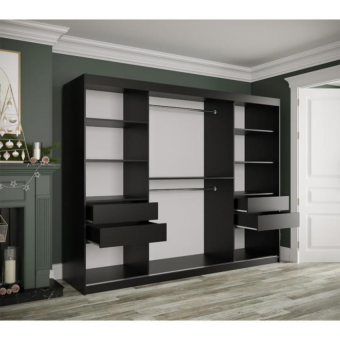Szafa przesuwna Marmur to praktyczny mebel do sypialni. Szafa sprawdzi się również jako szafa do przedpokoju czy jako garderoba. Kolor mebla wpasuje się w wiele aranżacji. Będzie pasowała do wnętrz klasycznych jak również do wnętrz nowoczesnych. To szafa, która posiada półki oraz drążek do wieszania ubrań. Pojemna szafa to dobre rozwiązanie, żeby schować to czego potrzebujesz, pomieścisz swoje ubrania oraz inne przedmioty. Płyta laminowana to płyta, z której została wykonana szafa. Możliwość dokupienia kompletu szuflad (2SZT) – 3355579.