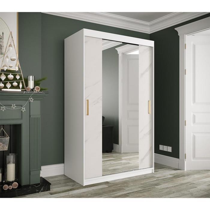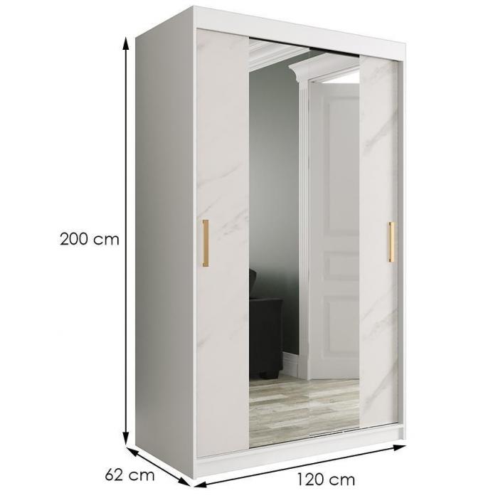 Szafa z drzwiami przesuwnymi Marmur to doskonały wybór do garderoby, przedpokoju, salonu czy sypialni. Kolor frontów i korpusu sprawiają, że wpasuje się w większość aranżacji. Jej wnętrze jest pojemne i pomieści zarówno ubrania jak i inne akcesoria. Szafa jest 2-drzwiowa oraz posiada lustro, które optycznie powiększy pomieszczenie.