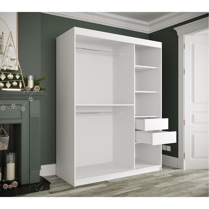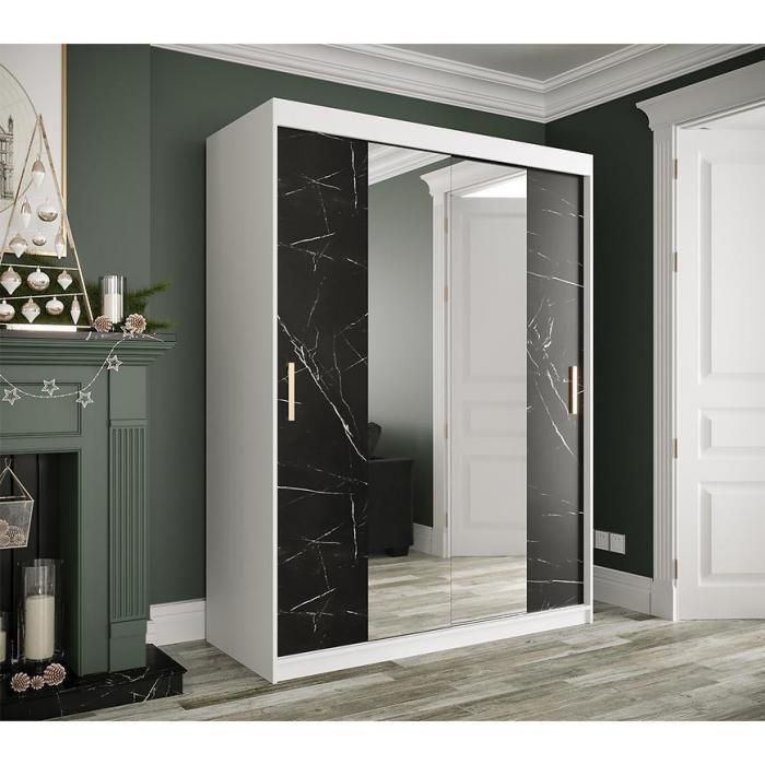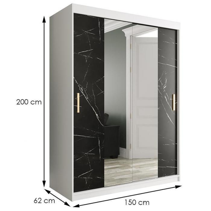Szafa z drzwiami przesuwnymi Marmur to doskonały wybór do garderoby, przedpokoju, salonu czy sypialni. Kolor frontów i korpusu sprawiają, że wpasuje się w większość aranżacji. Jej wnętrze jest pojemne i pomieści zarówno ubrania jak i inne akcesoria. Szafa jest 2-drzwiowa oraz posiada lustro, które optycznie powiększy pomieszczenie.