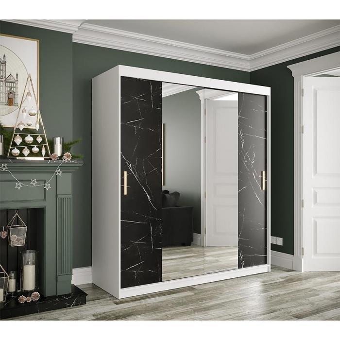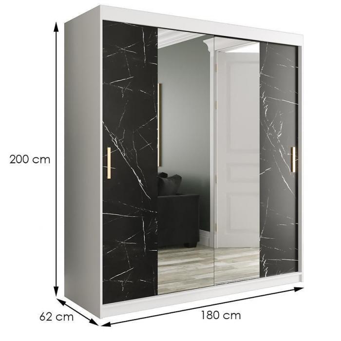Szafa z drzwiami przesuwnymi Marmur to doskonały wybór do garderoby, przedpokoju, salonu czy sypialni. Kolor frontów i korpusu sprawiają, że wpasuje się w większość aranżacji. Jej wnętrze jest pojemne i pomieści zarówno ubrania jak i inne akcesoria. Szafa jest 2-drzwiowa oraz posiada lustro, które optycznie powiększy pomieszczenie.