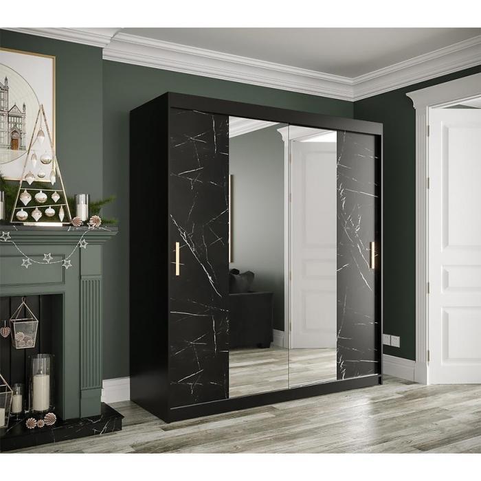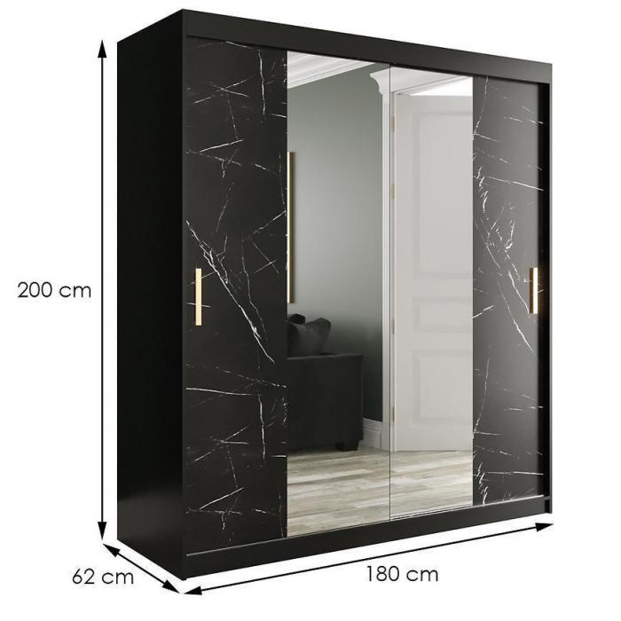 Szafa z drzwiami przesuwnymi Marmur to doskonały wybór do garderoby, przedpokoju, salonu czy sypialni. Kolor frontów i korpusu sprawiają, że wpasuje się w większość aranżacji. Jej wnętrze jest pojemne i pomieści zarówno ubrania jak i inne akcesoria. Szafa jest 2-drzwiowa oraz posiada lustro, które optycznie powiększy pomieszczenie.
