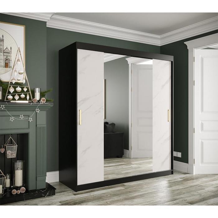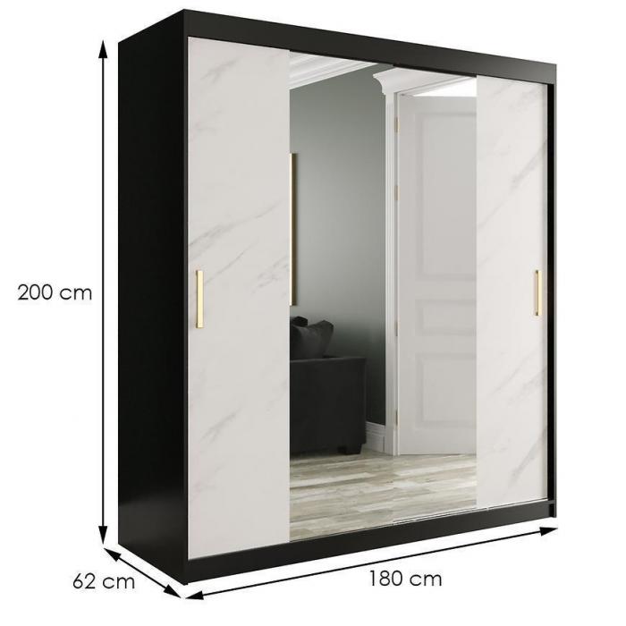 Szafa z drzwiami przesuwnymi Marmur to doskonały wybór do garderoby, przedpokoju, salonu czy sypialni. Kolor frontów i korpusu sprawiają, że wpasuje się w większość aranżacji. Jej wnętrze jest pojemne i pomieści zarówno ubrania jak i inne akcesoria. Szafa jest 2-drzwiowa oraz posiada lustro, które optycznie powiększy pomieszczenie.