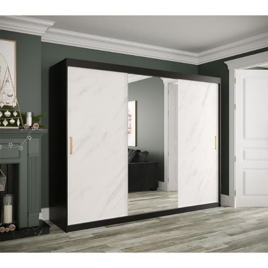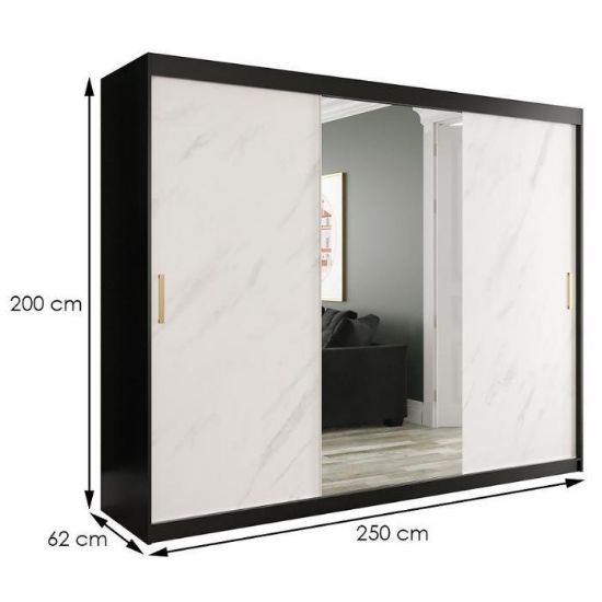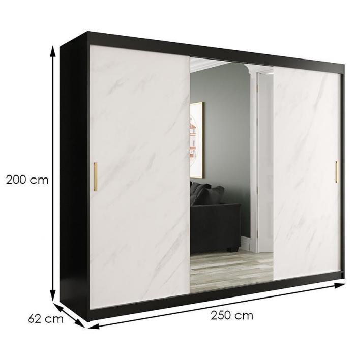 Szafa z drzwiami przesuwnymi Marmur to doskonały wybór do garderoby, przedpokoju, salonu czy sypialni. Kolor frontów i korpusu sprawiają, że wpasuje się w większość aranżacji. Jej wnętrze jest pojemne i pomieści zarówno ubrania jak i inne akcesoria. Szafa jest 3-drzwiowa oraz posiada lustro, które optycznie powiększy pomieszczenie.