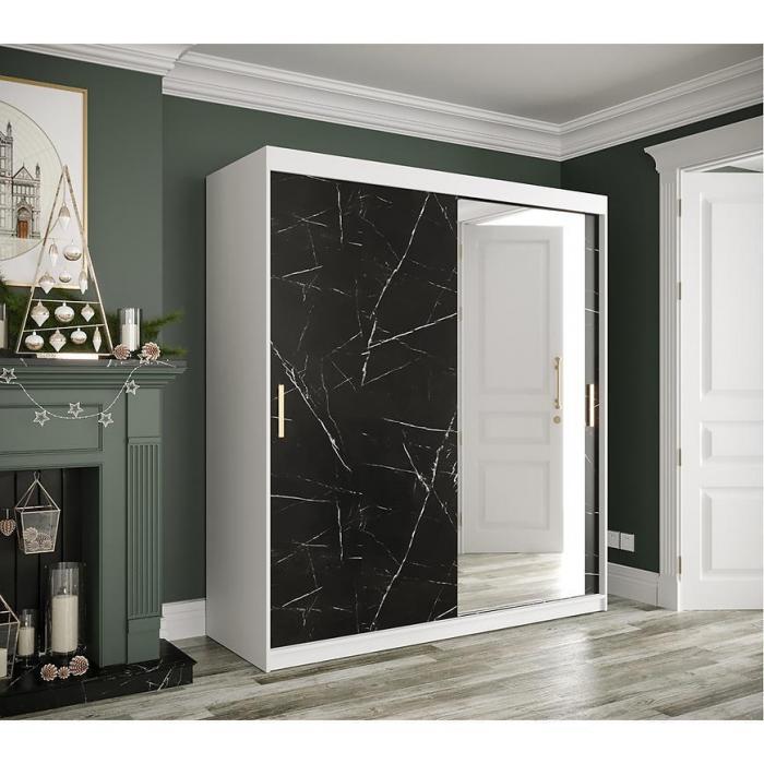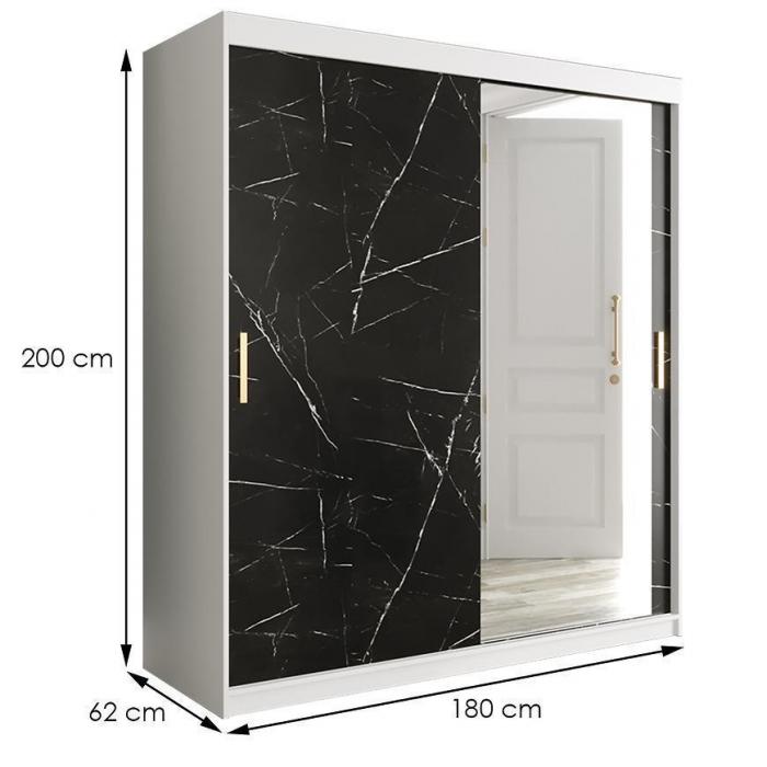 Szafa z drzwiami przesuwnymi Marmur to doskonały wybór do garderoby, przedpokoju, salonu czy sypialni. Kolor frontów i korpusu sprawiają, że wpasuje się w większość aranżacji. Jej wnętrze jest pojemne i pomieści zarówno ubrania jak i inne akcesoria. Szafa jest 2-drzwiowa oraz posiada lustro, które optycznie powiększy pomieszczenie.