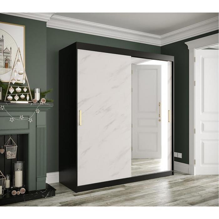 Szafa z drzwiami przesuwnymi Marmur to doskonały wybór do garderoby, przedpokoju, salonu czy sypialni. Kolor frontów i korpusu sprawiają, że wpasuje się w większość aranżacji. Jej wnętrze jest pojemne i pomieści zarówno ubrania jak i inne akcesoria. Szafa jest 2-drzwiowa oraz posiada lustro, które optycznie powiększy pomieszczenie.