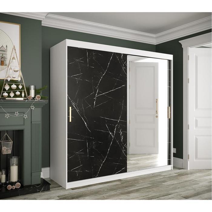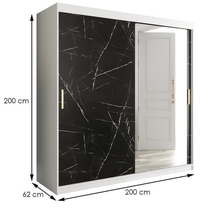 Szafa z drzwiami przesuwnymi Marmur to doskonały wybór do garderoby, przedpokoju, salonu czy sypialni. Kolor frontów i korpusu sprawiają, że wpasuje się w większość aranżacji. Jej wnętrze jest pojemne i pomieści zarówno ubrania jak i inne akcesoria. Szafa jest 2-drzwiowa oraz posiada lustro, które optycznie powiększy pomieszczenie.