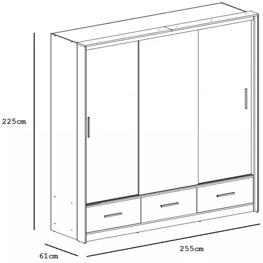 Szafa posiada półki, drążek na ubrania oraz szuflady. Duża szafa posiada również lustro, które sprawi, że pomieszczenie stanie się optycznie większe.
