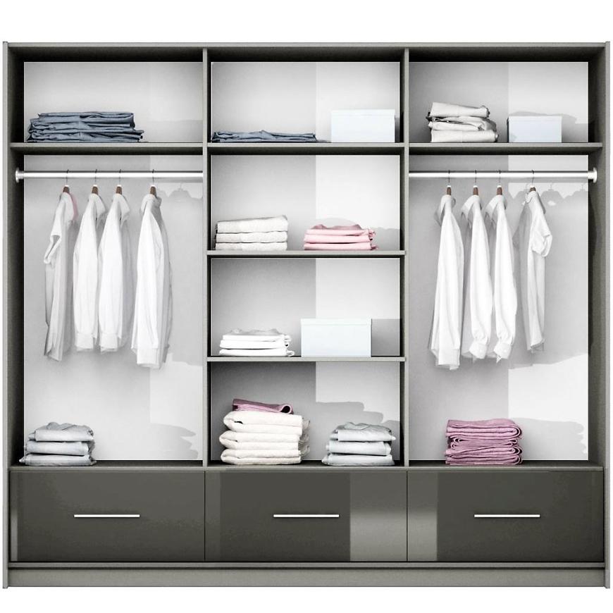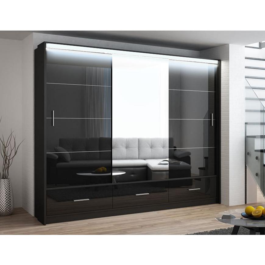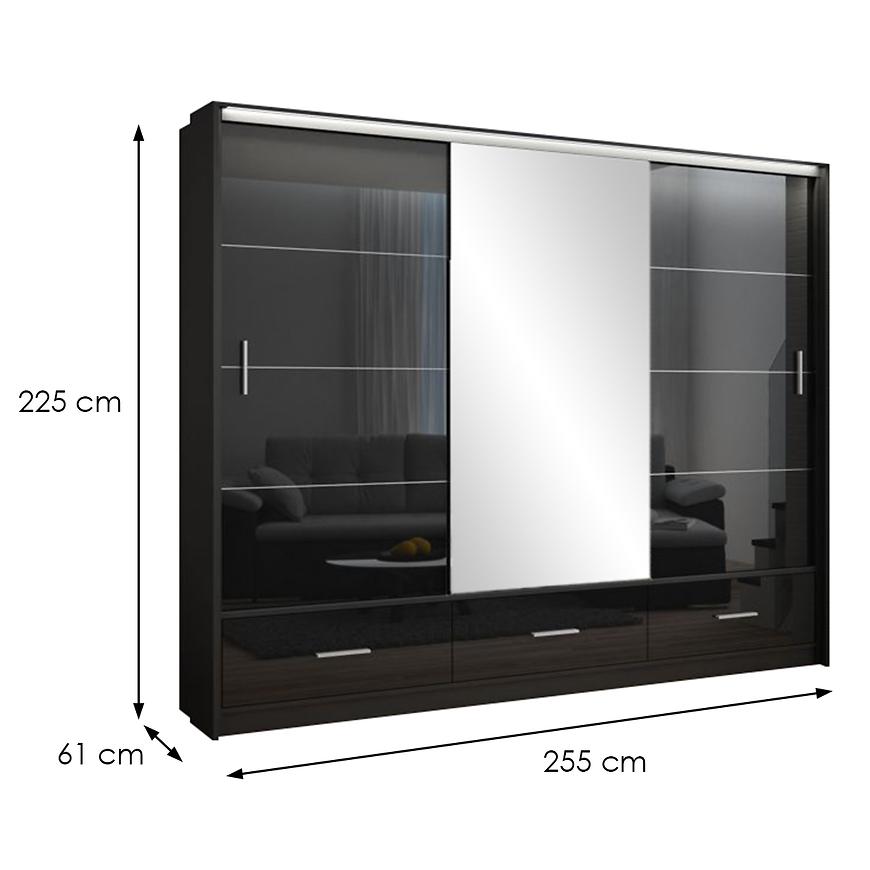 Szafa Marsylia 250 w kolorzeczarny połysk/czarny to doskonały wybór dla osób ceniących sobie nowoczesny styl i funkcjonalność. Ta elegancka, trzydrzwiowa szafa z przesuwnymi drzwiami jest nie tylko praktyczna, ale również estetycznie atrakcyjna. Drzwi są wyposażone w lustro co nie tylko dodaje wnętrzu przestronności, ale także umożliwia wygodne przeglądanie się.