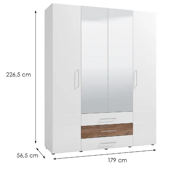 Szafa Masilia 4k3f2o (kod produktu: 11012124) to nowoczesny i funkcjonalny mebel, który doskonale sprawdzi się w sypialni lub garderobie. Jej imponujące wymiary – 226,5 cm wysokości, 179 cm szerokości i 56,5 cm głębokości – zapewniają dużą przestrzeń do przechowywania ubrań i akcesoriów.