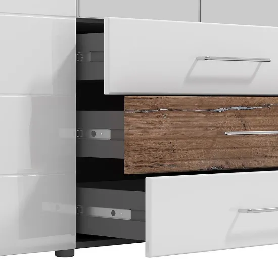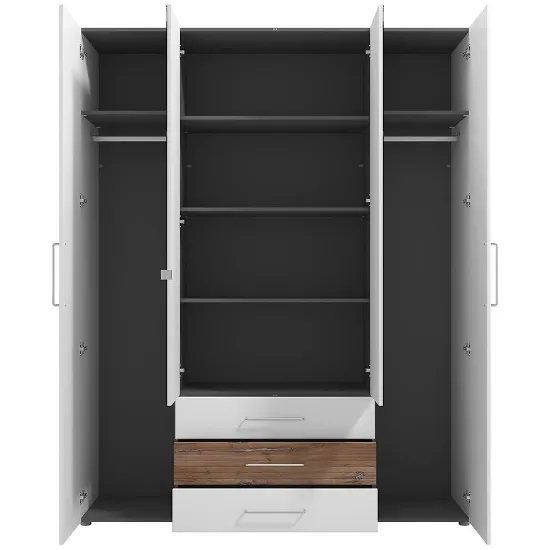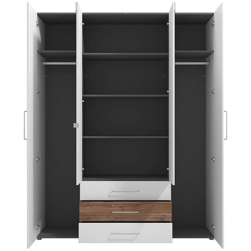 Szafa wyróżnia się efektownym designem z ciekawym wybarwieniem, które nadaje wnętrzu elegancji i nowoczesności. Wykonana z wytrzymałych materiałów, gwarantuje trwałość i odporność na codzienne użytkowanie. Jej konstrukcja została zaprojektowana z myślą o maksymalnej funkcjonalności, oferując mnóstwo miejsca do przechowywania.