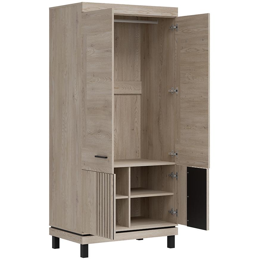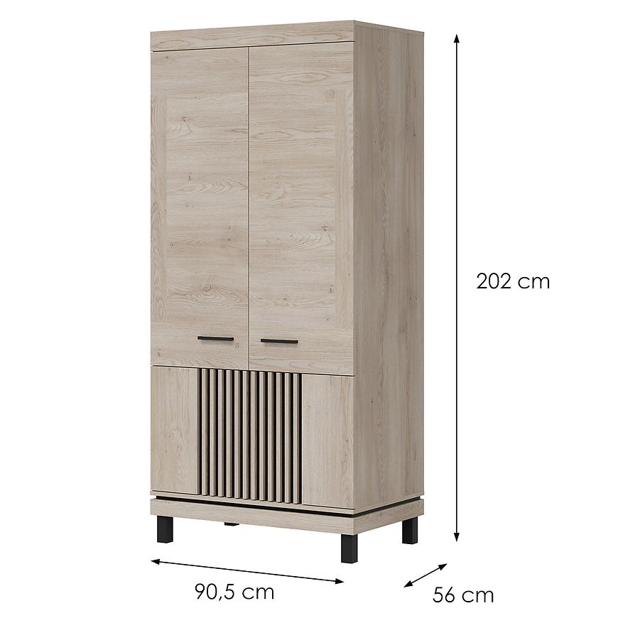 Szafa MATI to idealne rozwiązanie dla osób poszukujących stylowego i funkcjonalnego mebla do sypialni, garderoby lub przedpokoju. Jej nowoczesny design łączy klasyczne dwudrzwiowe skrzydło nadając wnętrzu elegancji. Połączenie kolorystyki dąb cremona cotta z głęboką czernią w matowym wykończeniu nadaje szafie wyjątkowy charakter, doskonale komponując się z nowoczesnymi aranżacjami.