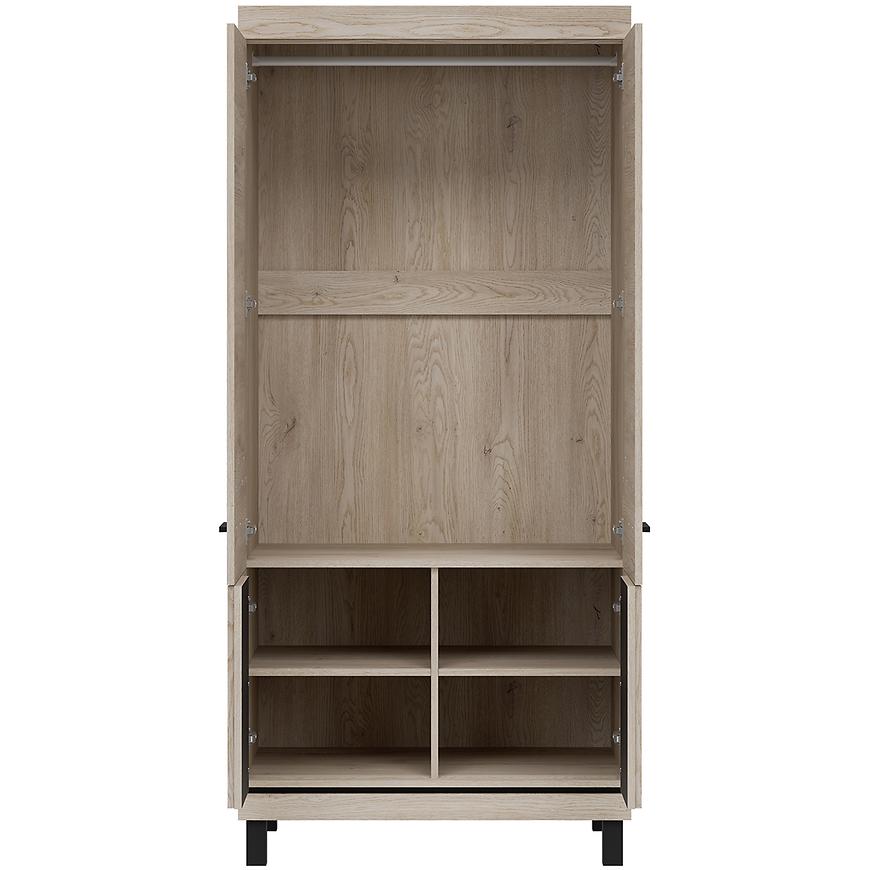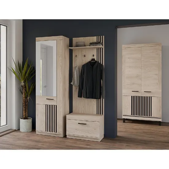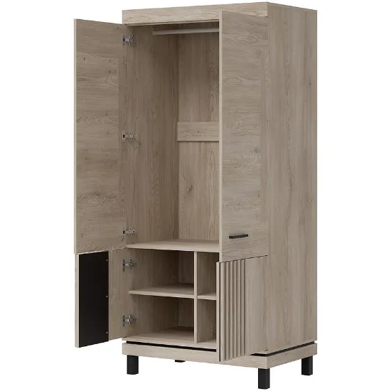 Konstrukcja wykonana z laminowanej płyty wiórowej gwarantuje trwałość oraz odporność na codzienne użytkowanie. Dzięki przemyślanej organizacji wnętrza szafa zapewnia mnóstwo miejsca do przechowywania ubrań, akcesoriów i innych przedmiotów. Kolekcja MATI to połączenie funkcjonalności i estetyki, które sprawdzi się w każdym nowoczesnym wnętrzu.