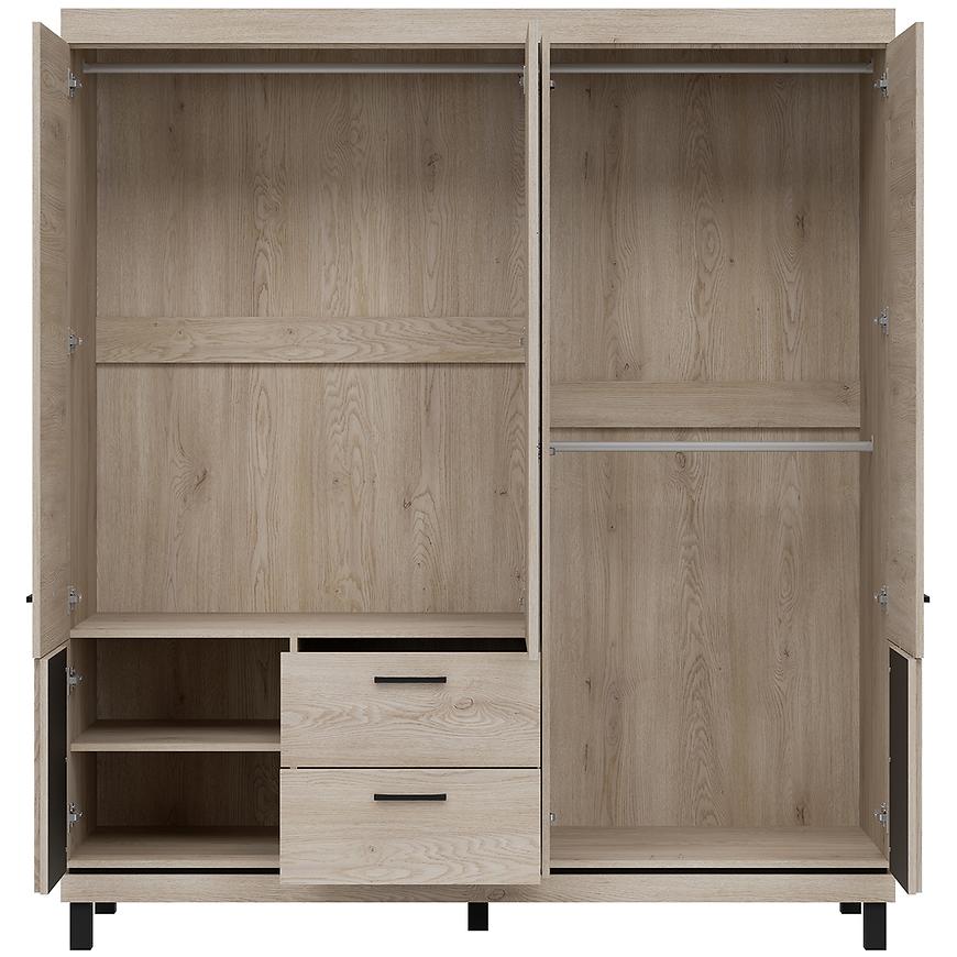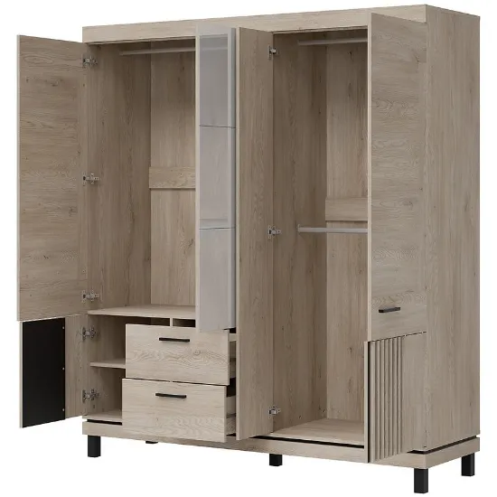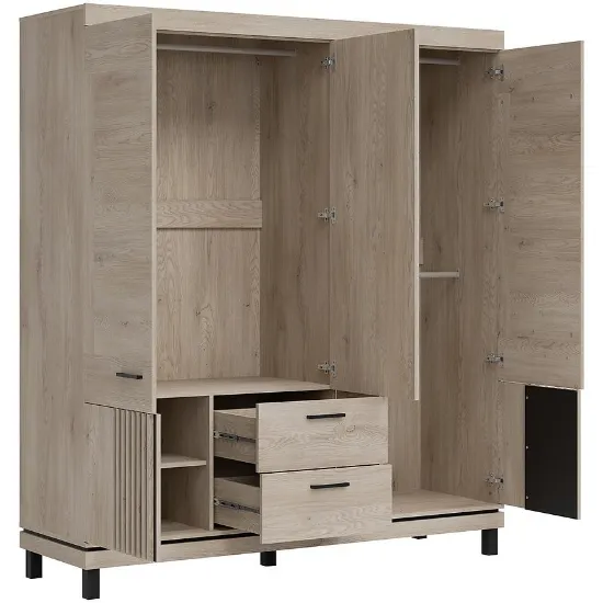 Konstrukcja wykonana z laminowanej płyty wiórowej gwarantuje trwałość oraz odporność na codzienne użytkowanie. Dzięki przemyślanej organizacji wnętrza szafa zapewnia mnóstwo miejsca do przechowywania ubrań, akcesoriów i innych przedmiotów. Kolekcja MATI to połączenie funkcjonalności i estetyki, które sprawdzi się w każdym nowoczesnym wnętrzu.