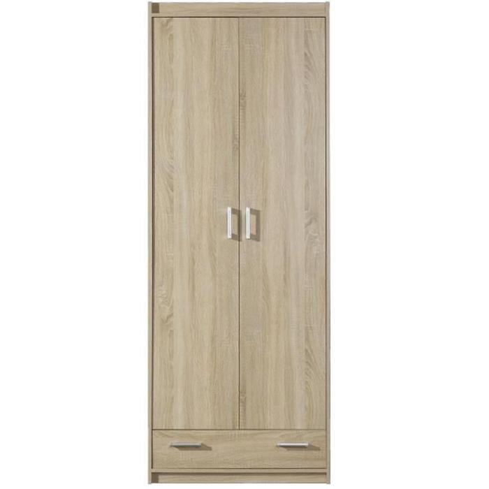 Szafa uchylna to propozycja do pokoju dziennego, ale znajdzie swoje miejsce również w innym pomieszczeniu, jak na przykład - przedpokój czy garderobie. Materiał wykonania to płyta laminowana. Szafa posiada półki, szufladę oraz drążek na ubrania. Nowoczesny styl mebli wpadnie do gustu każdemu, kto poszukuje eleganckiego, klasycznego, a zarazem nowoczesnego umeblowania. Idealnie wpasuje się w większość aranżacji. Przeznaczona do samodzielnego montażu.